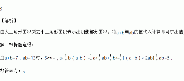 如图,两个正方形边长分别为a、b,如果a+b=7,ab=13,则阴影部分的面积为_____.