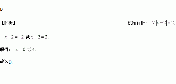 若│x-2│=2,则x的值是( )