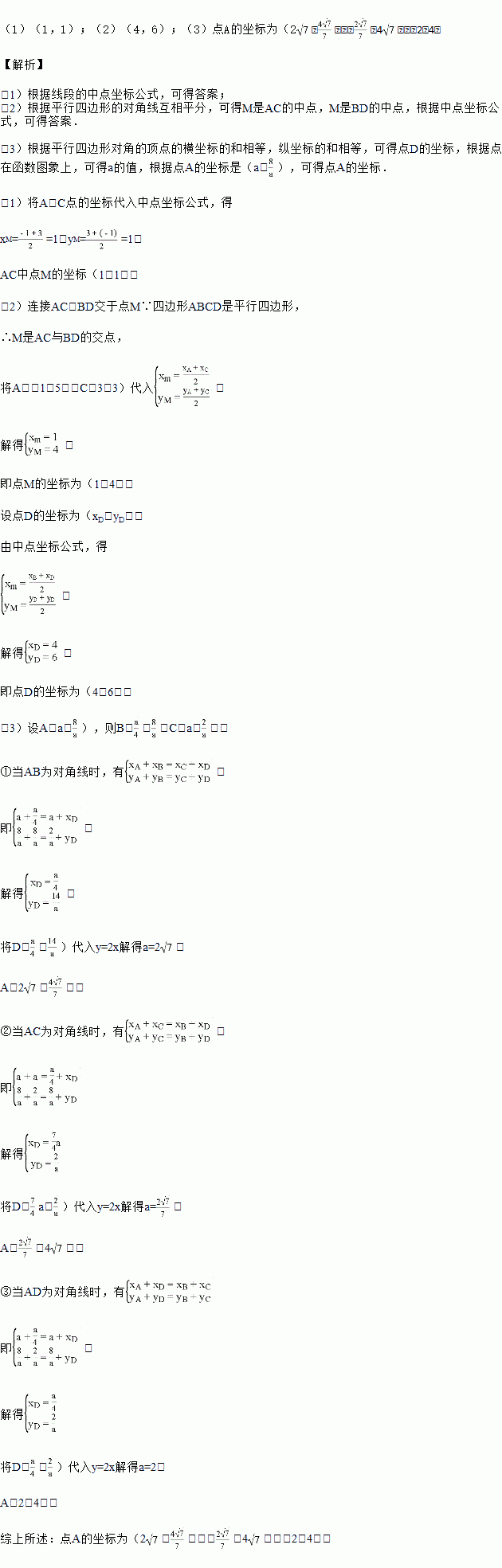 如图①,在平面直角坐标系中,若已知点A(xA,yA)和点C(xC,yC),点M为线段AC的中点,利用三角形全等的知识,有△AMP≌△CMQ,则有PM=MQ,PA=QC,即xM﹣xA=xC﹣xM,yA﹣yM=yM﹣yC,从而有