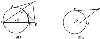 (2)将PE绕点P顺时针旋转,使点E移到圆内,并在⊙O上另选一点A,如图2.其他条件不变,在图2中画出完整的图形.此时PE与BC是否仍然平行?证明你的结论.