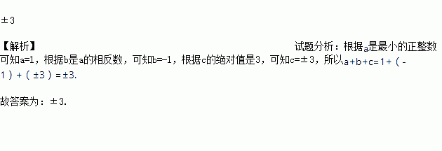 已知a是最小的正整数,b是a的相反数,c的绝对值是3,则a+b+c=______