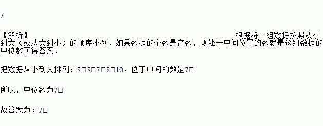 五名工人每天生产零件数分别是:5,7,8,5,10,则这组数据的中位数是_____.