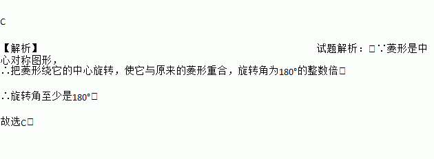一个菱形绕它的两条对角线的交点旋转,使它和原来的菱形重合,那么旋转的角度至少是( )