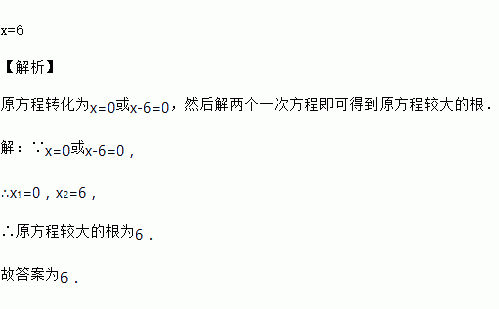 一元二次方程x(x-6)=0的两个实数根中较大的根是____.