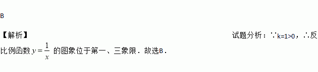 B 【解析】试题分析:∵k=1>0,∴反比例函数的图象位于第一、三象限.故选B.