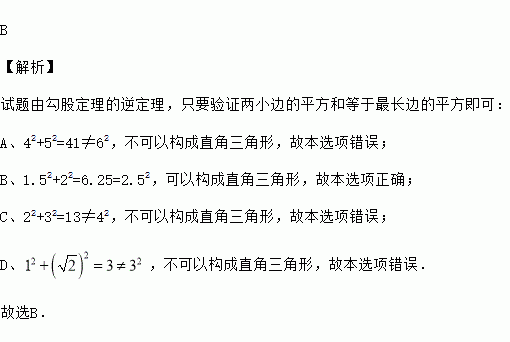下列四组线段中,可以构成直角三角形的是( )