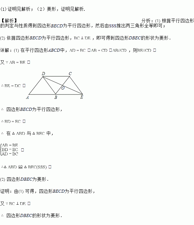 连接BD,若,试判断四边形DBEC的形状,并说明理由.