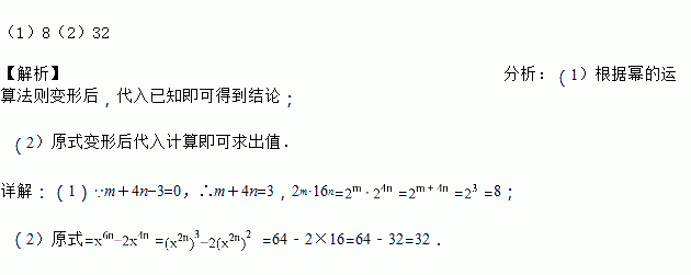 (2)已知n为正整数,且x2n=4,求(x3n)2-2(x2)2n的值.