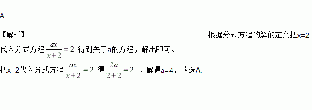 的解为2,则a的值为( )