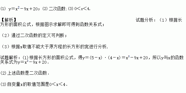 如图2 - 4所示,长方形ABCD的长为5 cm,宽为4 cm,如果将它的长和宽都减去x(cm),那么它剩下的小长方形AB′C′D′的面积为y(cm2).