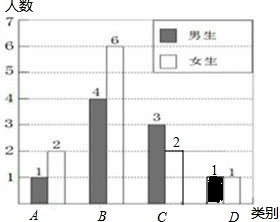 分析:(1)由扇形统计图可知,特别好的占总数的15%,人数有条形图可知3人,所以调查的样本容量是:3÷15%,即可得出C类女生和D类男生人数;