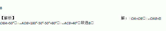 如图,A、B、C三点都在⊙O上,∠ABO=50°,则∠ACB=( )