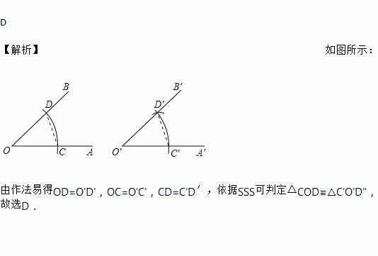 如图,用直尺和圆规作一个角等于已知角,其作图的依据是 ( )