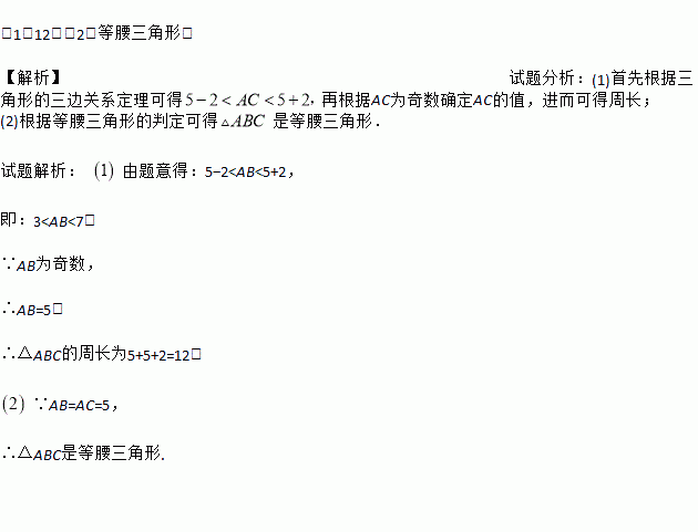 已知在△ABC中,AB=5,BC=2,且AC的长为奇数.