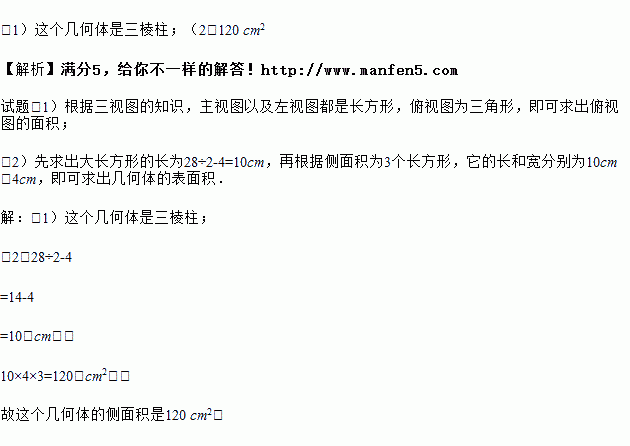 (2)若俯视图中等边三角形的边长为4cm,主视图中大长方形的周长为28cm,求这个几何体的侧面积.