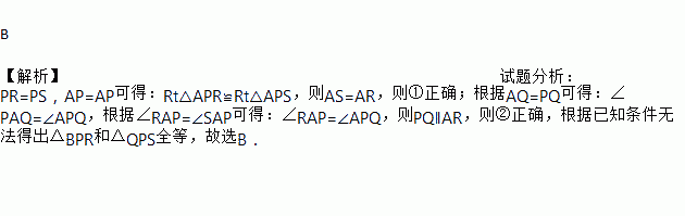 如图,在△ABC中,AQ=PQ,PR=PS,∠RAP=∠SAP,PR⊥AB于点R,PS⊥AC于点S,则下列三个结论:①AS=AR;②QP∥AR;③△BPR≌△QPS中( )