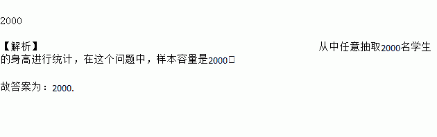 为了解淮安市八年级学生的身高情况,从中任意抽取2000名学生的身高进行统计,在这个问题中,样本容量是_____.