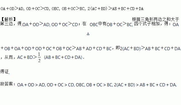 ∴OA+OB+OA+OD+OD+OC+OB+OC>AB+AD+CD+BC,