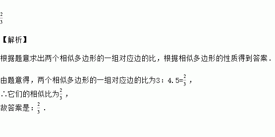 两个相似多边形的一组对应边边长分别为3cm和4.5cm,那么它们的相似比为________