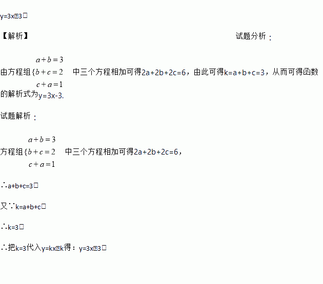 若方程组的解满足k=a+b+c,求关于x的函数y=kx﹣k的解析式.