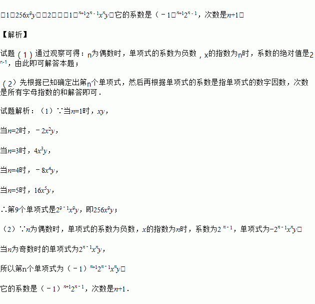 观察下列一串单项式的特点:xy,-2x2y,4x3y,-8x4y,16x5y,…