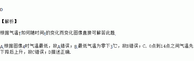 A. 0点时气温达到最低 B. 最低气温是零下4℃