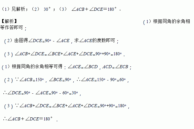 (3)写出∠ACB与∠DCE之间所具有的数量关系.