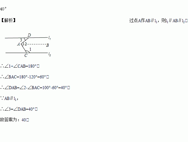 如图,l1∥l2,∠1=120°,∠2=100°,则∠3=_____度.