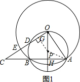 分析 (1)首先设OP的延长线交AB于点H,连接AP,由垂径定理可求得AH的长,然后由三角函数,求得OH的长,再设⊙P的半径为r,由在Rt△AHP中,AH2+PH2=AP2,即可求得答案;