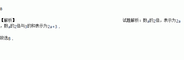 “a的2倍与3的和”,可列代数式为( )