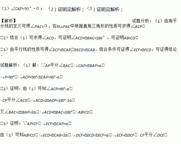 如图,AP,CP分别平分∠BAC,∠ACD,∠P=90°,设∠BAP=α.