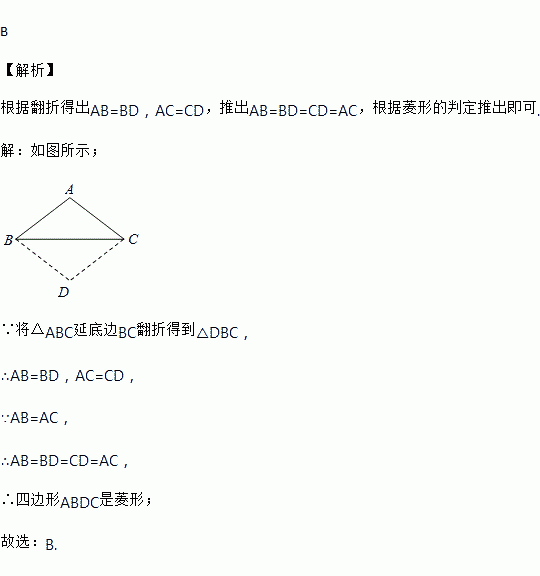 如图,已知△ABC,AB=AC,将△ABC沿边BC翻转,得到的△DBC与原△ABC拼成四边形ABDC,则能直接判定四边形ABDC是菱形的依据是( )