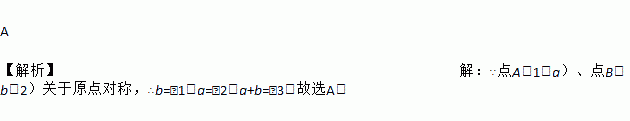 A 【解析】【解析】 ∵点A(1,a)、点B(b,2)关于原点对称,∴b=﹣1,a=﹣2,a+b=﹣3,故选A.
