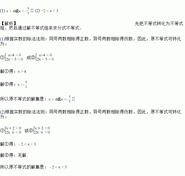 根据实数的除法法则:同号两数相除得正数,异号两数相除得负数,因此,原不等式可转化为: