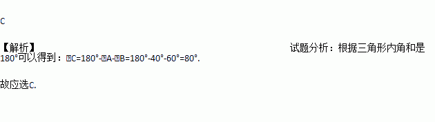 △ABC中,∠A=40°,∠B=60°,则∠C的度数是( )