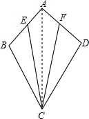 连接AC,先利用SSS证明△ABC≌△ADC,根据全等三角形的对应角相等得出∠1=∠2,再利用SAS证明△EAC≌△FAC,即可得到EC=FC.