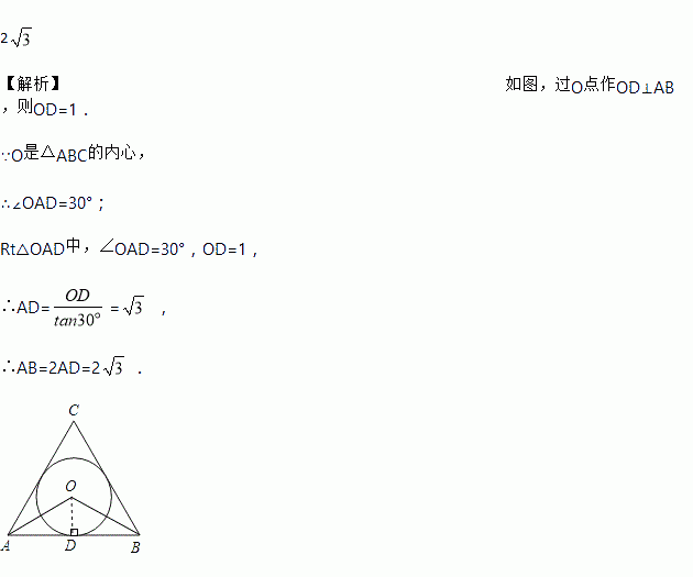 如果正三角形ABC的内切圆半径为1,那么三角形的边长为__________.