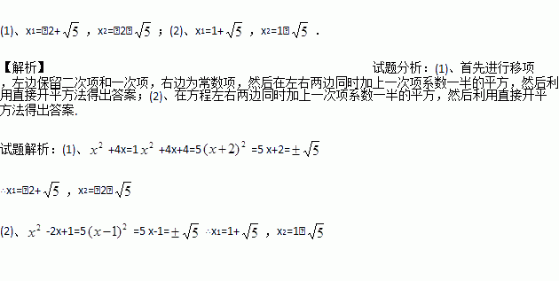 解方程:(1)x2+4x﹣1=0;(2)x2﹣2x=4.(用配方法)
