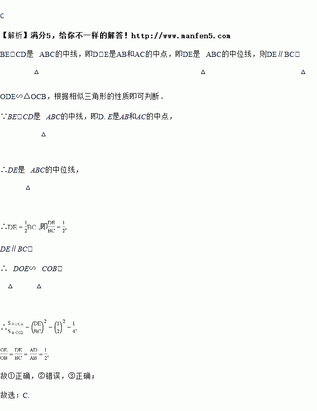 如图,在△ABC中,中线BE,CD相交于点O,连接DE,有下列结论:① =;②=;③.