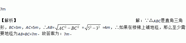 如图所示,一段楼梯,高BC是3 m,斜边AC是5 m,如果在楼梯上铺地毯,那么至少需要地毯________.