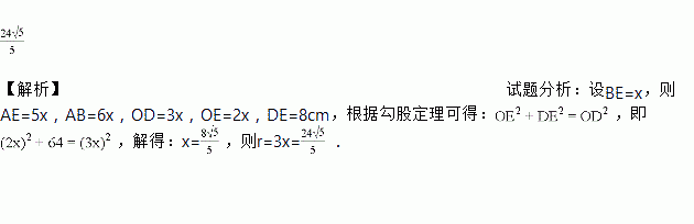 如图,⊙O的直径AB平分,AB交CD于E,AE与BE的长度之比为5∶1,CD=16 cm,则⊙O的半径为_______cm.