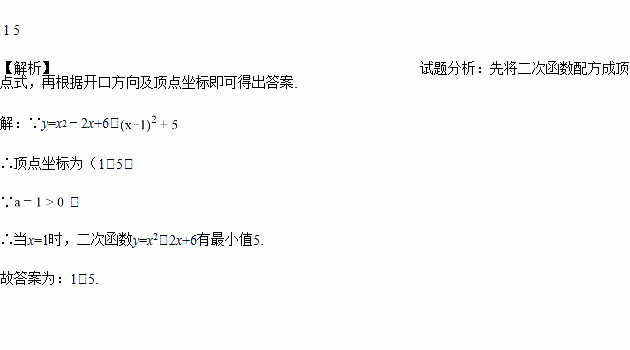 当x=________时,二次函数y=x2﹣2x+6有最小值________.