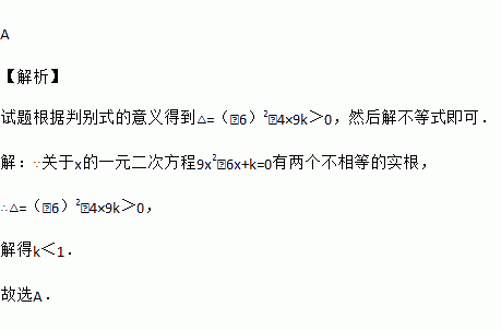 关于x的一元二次方程9x2﹣6x+k=0有两个不相等的实根,则k的范围是( )