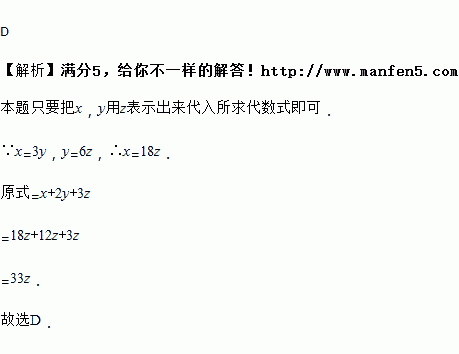 如果x=3y,y=6z,那么x+2y+3z的值为( )