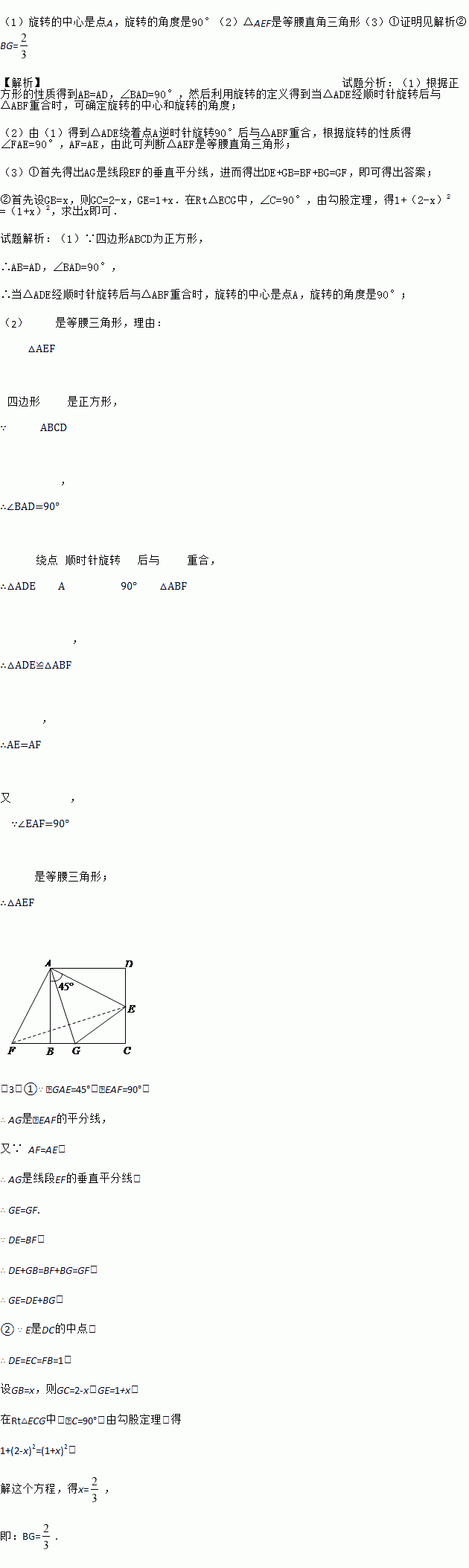 Èçͼ£¬ÒÑÖªÕý·½ÐÎABCDµÄ±ß³¤ÊÇ2£¬EÊÇDCÉÏÒ»µã£¬¡÷ADE¾Ë³Ê±ÕëÐýתºóÓë¡÷ABFÖØºÏ.