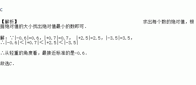 如图,检测4个足球,其中超过标准质量的克数记为正数,不足标准质量的克数记为负数.从轻重的角度看,最接近标准的是( )