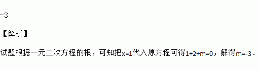若x=1是一元二次方程x2+2x+m=0的一个根,则m的值为______.