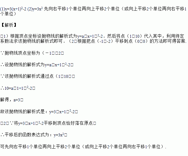 已知抛物线顶点坐标为(-1,-2)且通过点(1,10).