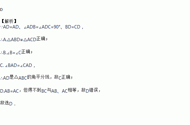 A. △ABD ≌△ACD B. ∠B = ∠C