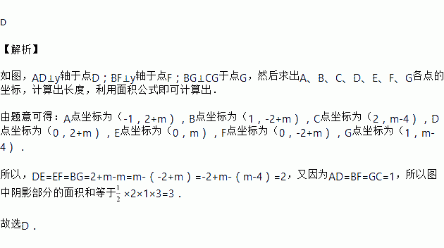 如图所示,点A,B,C在一次函数y=-2x+m的图象上,它们的横坐标依次为-1,1,2,分别过这些点作x轴与y轴的垂线,则图中阴影部分的面积之和是( )